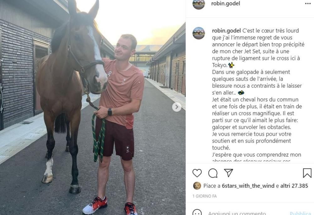 Il cavallo si era fatto male durante la gara di cross country alle Olimpiadi in corso; il team ha poi annunciato la triste notizia: l’animale è stato abbattuto. Jet Set, cavalcato dallo svizzero Robin Godel, si era fatto male a una zampa anteriore durante il salto di un ostacolo con l’acqua; quindi il trasporto alla clinica per le visite mediche che hanno constatato uno strappo al legamento anteriore destro per l’esemplare di 14 anni. Un infortunio del genere non gli avrebbe permesso di tornare più in pista, oltre al grande dolore che gli sarebbe costata la degenz; e da qui la decisione di abbatterlo, prassi comune di fronte a questi tipi di infortunio su un cavallo da corsa. Il suo fantino, commosso, ha pubblicato su Instagram una foto per salutarlo: “È con il cuore molto pesante che vi annuncio la morte troppo precoce del mio caro Jet Set. Era un cavallo straordinario, gareggiava per ciò che amava di più: galoppare e sorvolare gli ostacoli”. Anche la Federazione equestre internazionale (Fei) ha espresso il suo cordoglio: “Una notizia tristissima. Una vera perdita per l’equitazione. Jet Set sarà sempre ricordato come il fantastico cavallo che ha catturato tutti i nostri cuori”.