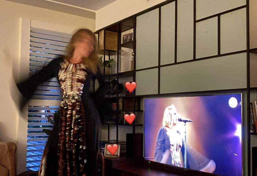 Adele ha decisamente cambiato vita: nell’aprile 2019 si è separata dal marito Simon, dopo ben 7 anni e ora si mostra in tutta la sua ritrovata serenità, ma senza scordare i momenti della sua vita passata. Nell’altra foto scattata durante la “serata ricordo”, la cantante indossa il pigiama, si rinfresca con un piccolo ventilatore e nella televisione si vede un fermo immagine dei suoi fan che la acclamano al festival del 2016.