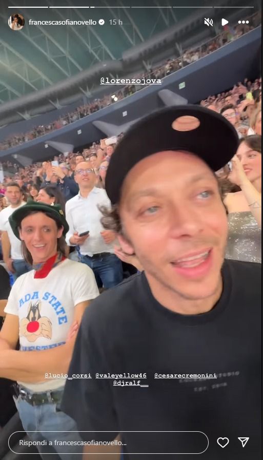 Il live di Jovanotti, come sempre carico di energia e coinvolgente, ha saputo trasformare l’arena in una gigantesca festa, con il pubblico che ha cantato e ballato senza sosta. E proprio tra le file del parterre, Rossi, Cremonini e Corsi si sono lasciati trascinare dall’entusiasmo della serata. Il pilota di Tavullia, amatissimo nella sua terra, ha seguito il concerto in compagnia della fidanzata Francesca Noviello, che ha condiviso alcuni momenti dell’evento sui social. Tra le storie pubblicate spiccano le immagini del gruppo scatenato sulle note di Ragazzo Fortunato, brano iconico di Jovanotti che ha fatto cantare intere generazioni.