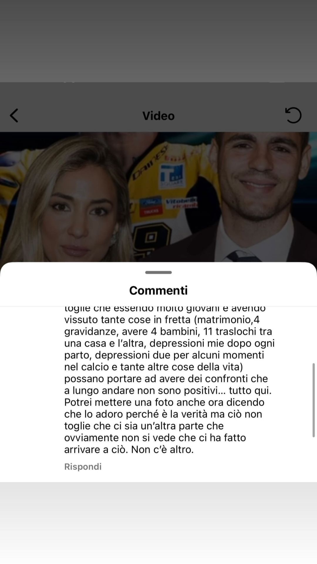 E allora perché il divorzio? “I motivi sono nostri e rimarranno nostri. Le vacanze, le foto, l’amore è vero ma ciò non toglie che essendo molto giovani e avendo vissuto tante cose (matrimonio, quattro gravidanze, undici traslochi, depressioni mie dopo ogni parto e depressioni sue per alcuni momenti nel calcio e tante altre cose) possano portare ad avere dei confronti che a lungo andare non sono positivi. Potrei mettere una foto anche ora dicendo che lo adoro perché è la verità ma ciò non toglie che ci sia un’altra parte che ovviamente non si vede e che ci ha fatto arrivare a ciò. Non c’è altro”.