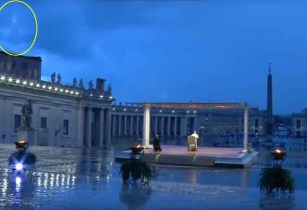 Proprio durante la benedizione, però, mentre il papa era solo sul sagrato della Basilica di San Pietro e la pioggia bagnava quella piazza vuota, molti utenti hanno notato qualcosa di speciale nel cielo.