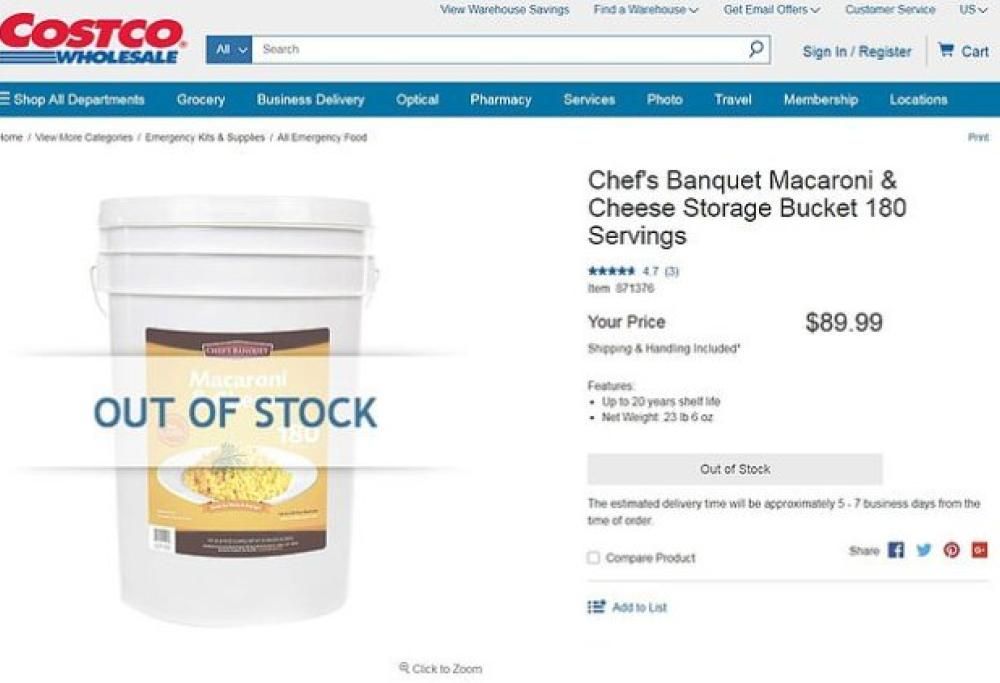 La catena americana Costco mette in vendita un secchio di pasta al formaggio precotta da 12 chili: il prodotto registra un out of stock.
