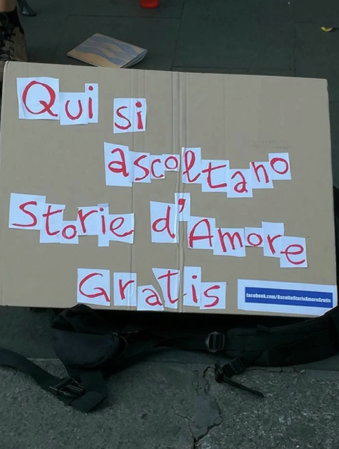Marco, 39enne milanese che nella vita programma software per un’azienda informatica, ha da poco scoperto di avere una dote innata: sa ascoltare le persone. Uscito da poco da una delusione amorosa, ha deciso di prendere una sedia pieghevole e andare in Piazza Castello con un cartello: “Ascolto storie d’amore gratis”. Il libro di Murakami che si era portato per ingannare la noia, in realtà, non è riuscito nemmeno ad aprirlo perché in pochissimi minuti si è subito formata una fila di persone in cerca di conforto. “Tutto è nato per caso, su Internet. Avevo trovato la foto di un signore che, forse in Uruguay o forse in Cile, si era messo seduto per strada con il cartello ‘Se escuchan historias de amor gratis’. Mi sono detto: e se lo facessi anche io? E se inizialmente l’ho fatto per lanciare un messaggio a una ragazza – spiega Marco – ora gli obiettivi sono altri”. E così è nato il progetto “Ascolto storie d’amore gratis” rivolto a tutti i cuori infranti. Ma il 39enne milanese ha subito voluto mettere in chiaro alcuni punti fermi: la storia non deve durare più di 15 minuti, non viene registrato niente, non vengono date “soluzioni” nè accettati soldi.