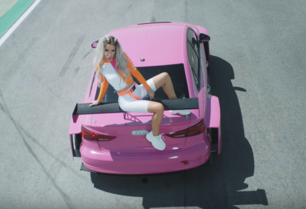 Il videoclip è ambientato nell'autodromo di Adria e l'auto da corsa della cantante è rosa shocking: cosa volete di più?