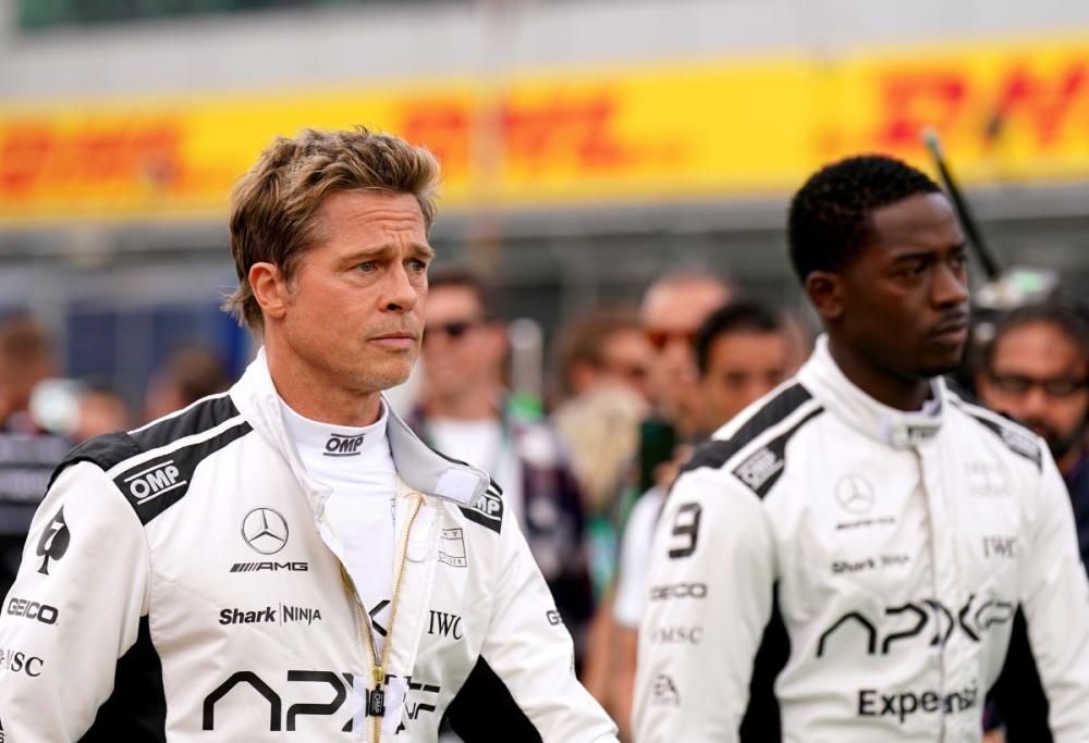 L’attore è stato avvistato in compagnia di una squadra fittizia del APXGP e alcune scene hanno anche previsto che lui salisse alla guida di una vettura della F1 (in realtà da Formula 2, ma modificata con alcuni accessori in più) appositamente customizzata per le riprese.