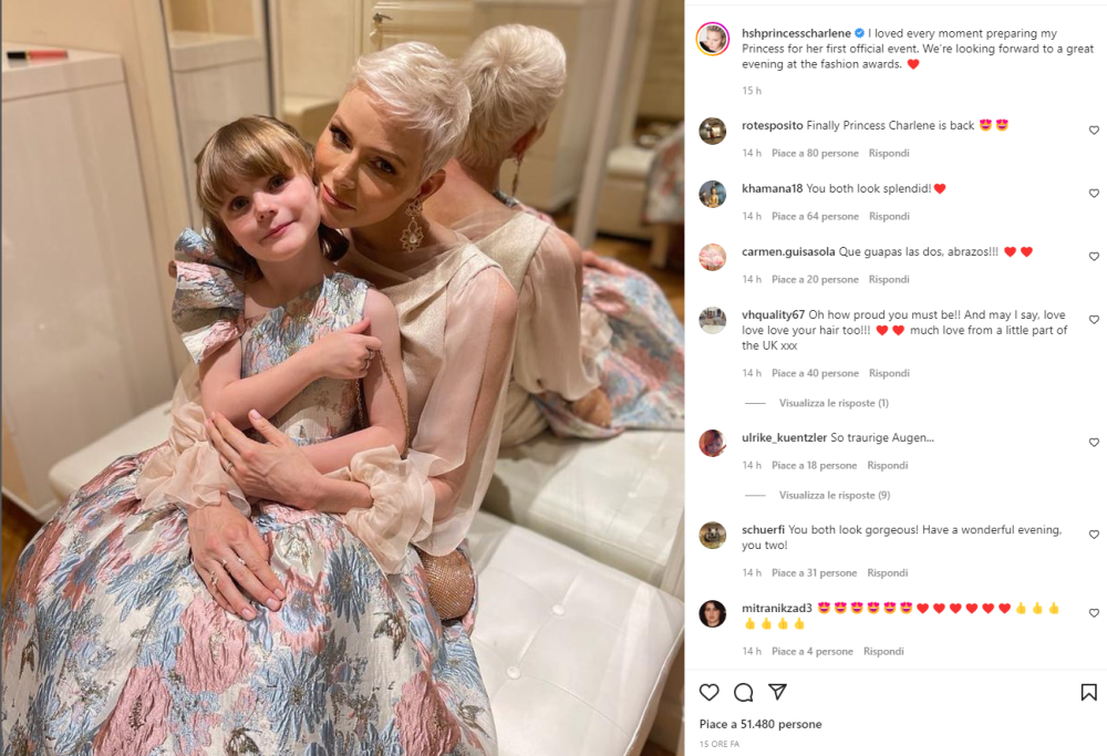 La principessa Charlene di Monaco e la figlia Gabriella sono apparse sorridenti ed elegantissime in occasione della Fashion Week di Monte Carlo a cui hanno partecipato. È la prima volta che le vediamo da sole in un’occasione ufficiale dopo il difficile periodo trascorso all’estero dalla principessa. Nella foto che Charlene ha pubblicato su Instagram c’è tutto il suo entusiasmo: “Ho adorato ogni momento della preparazione della mia Principessa per il suo primo evento ufficiale. Ci aspettiamo una bellissima serata ai premi della moda”.