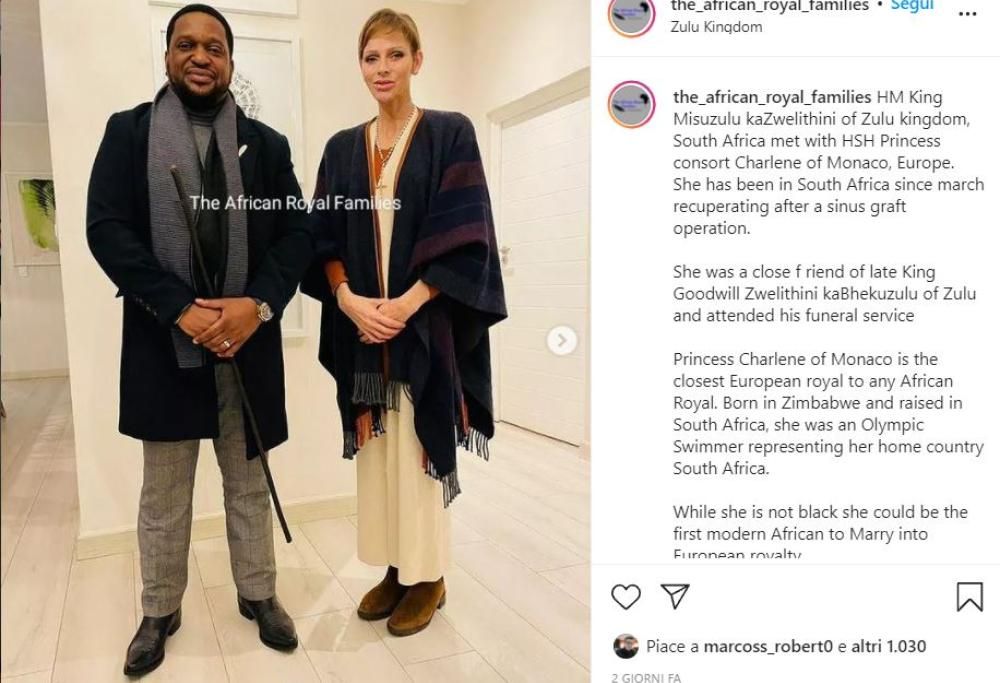 Charlène di Monaco ha fatto restare tutti i sudditi del Principato di Monaco con il fiato sospeso per le sue condizioni di salute. La principessa si trovava in Africa, dove è cresciuta, durante la sua permanenza ha contratto una grave infezione a gola, naso e orecchio a maggio che l’ha obbligato a sottoporsi a un lungo periodo di degenza, tenendola lontana dalla famiglia. Dopo le ultime rassicurazioni da parte del marito Alberto che ha tra le altre cose smentito i rumor sulla loro imminente separazione, la principessa è apparsa nuovamente in pubblico in una situazione ufficiale. Si è infatti recata dal re Misuzulu, capo della comunità Zulu in Sudafrica nonché figlio del defunto sovrano Goodwill Zwelithini e rappresentante della maggiore comunità etnica africana; nelle foto la principessa appare sorridente, ma molto deperita. Bloccata ormai da sette mesi in Sudafrica dovrebbe essere sottoposta a un ulteriore controllo tra qualche giorno per decidere circa il suo rientro a Monaco da marito e figli. La visita della principessa è stata molto apprezzata dalle comunità locali, che sentono la vicinanze dell’ex campionessa di nuoto ed esponente dell’aristocrazia europea alle comunità africane.