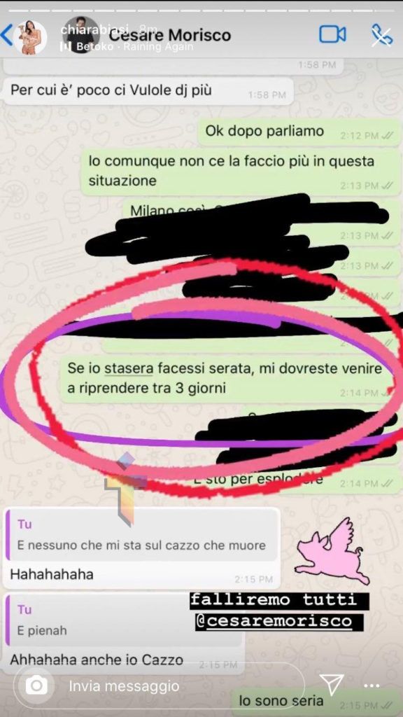 Chiara Biasi è di nuovo sotto l’occhio polemico della rete. L’influencer, dopo essere passata alla storia affermando che lei per 80.000 euro non si alza la mattina, ne ha combinata un’altra delle sue. Questa volta c’entra il Coronavirus. La ragazza ha pubblicato una storia su Instagram di una chat con un amico nel quale si legge: “nessuno che mi sta sul ca**o che muore“. L’argomento si riferiva al fatto che Milano in questo periodo è blindata e lei non ce la fa più in questa situazione. Il web si è scagliato contro di lei, al punto che la storia è stata prontamente rimossa. Ma qualcuno l’ha screenshotatta e l’ha divulgata in rete.
