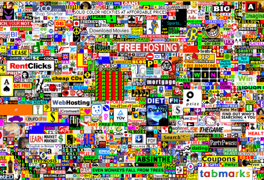 - Nel 2005 uno studente britannico creò la Million Dollar Homepage. Una pagina web inutile che lo fece diventare ricco. Lui era Alex Tew, aveva 21 anni e creò un sito web composto da un milione di pixel. Un normale display a 1080p, come quello che solitamente si ha su telefono o computer, ne ha più di due milioni. Il sito aveva meno della metà dei pixel del vostro schermo. Poi ha deciso che avrebbe venduto i pixel a 1 dollaro l’uno a chi volesse farsi pubblicità ed il suo affare è riuscito. il sito web gli ha fruttato un milione di dollari. Geniale? O sono stupidi gli acquirenti?
