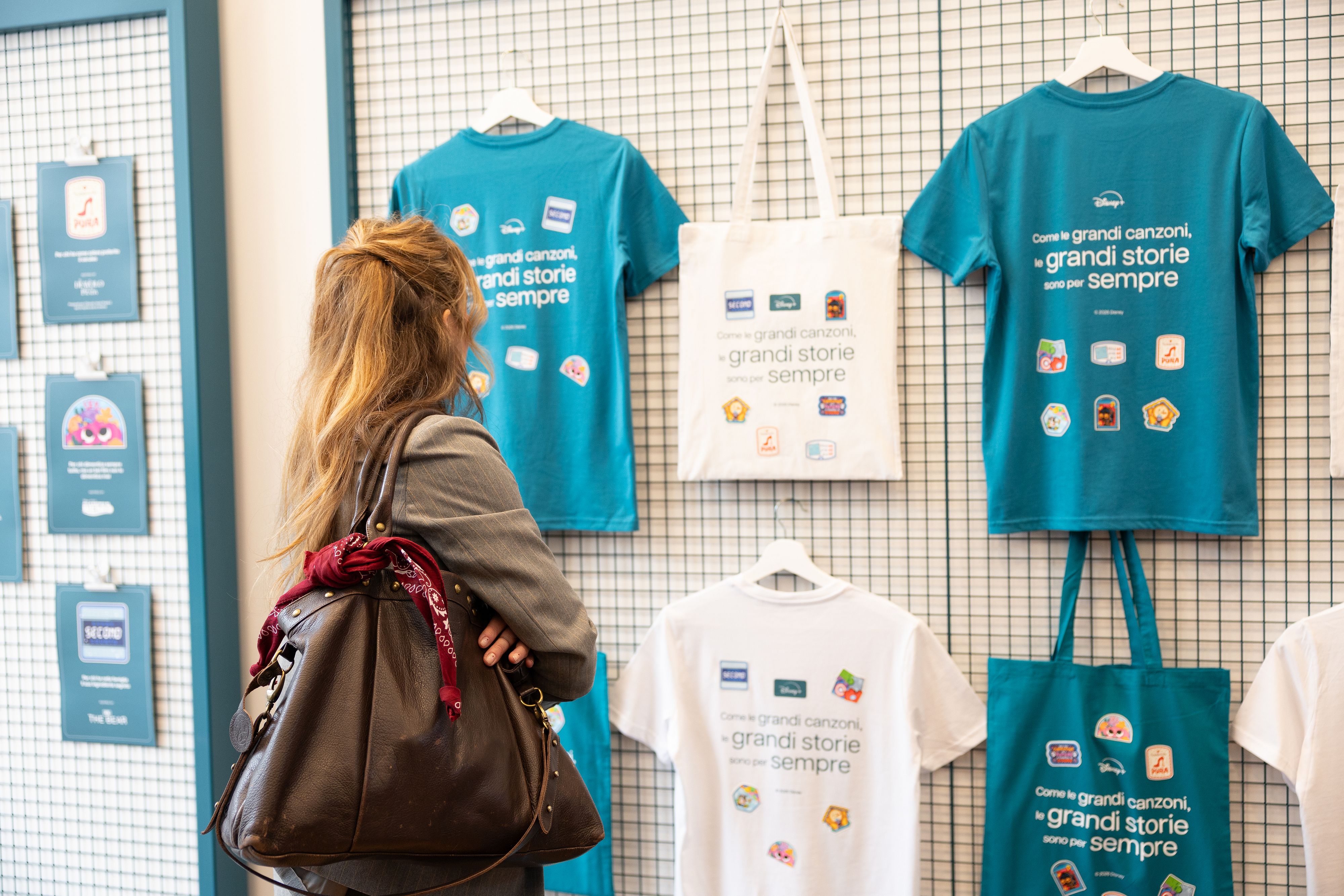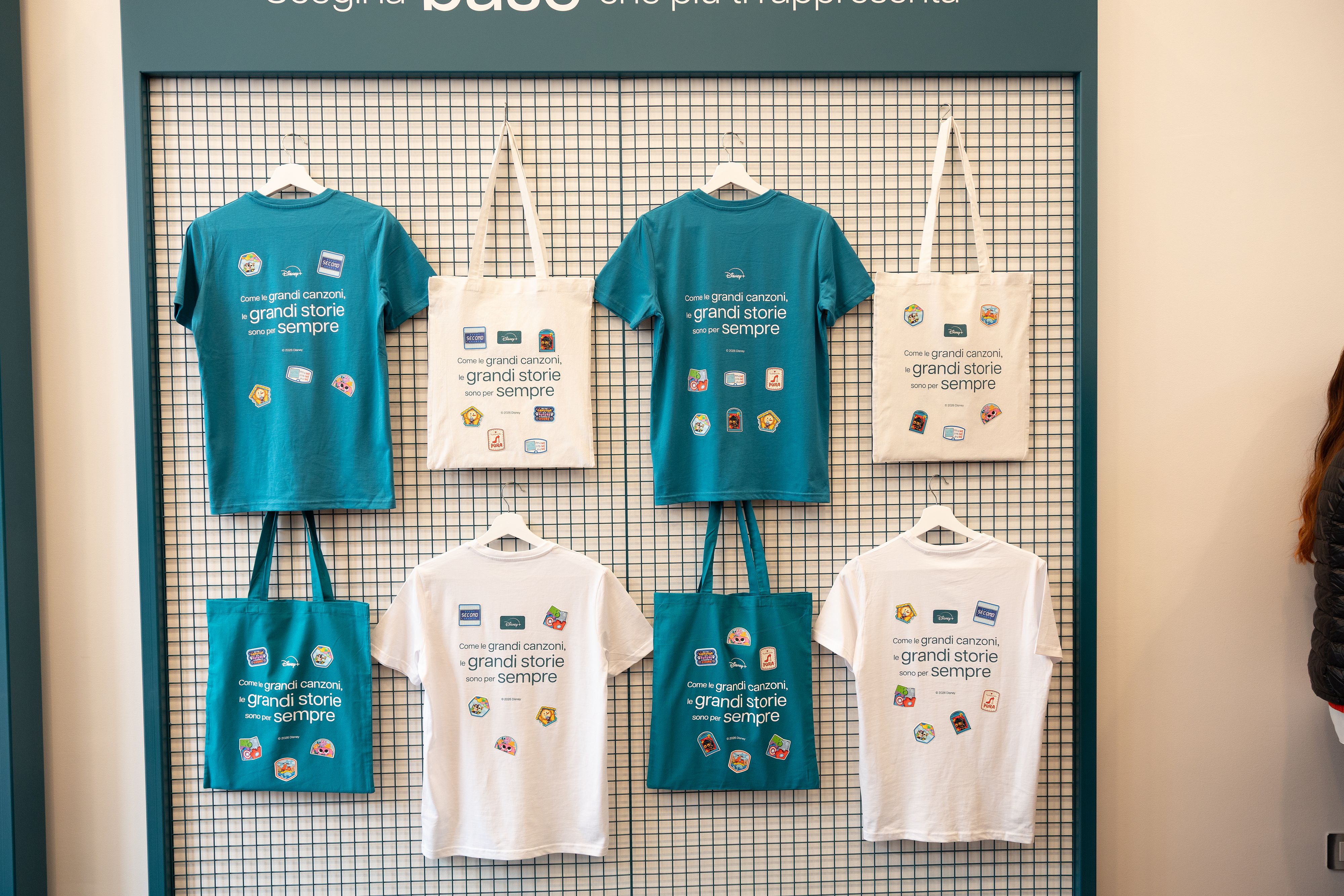 Bag – e magliette – create presso lo spazio STICK THE HIT , il Custom Lab che Disney+ ha allestito nel cuore della “città della Musica”. Qui, per sei intensi giorni, le grandi storie sono diventate ricordi da indossare.