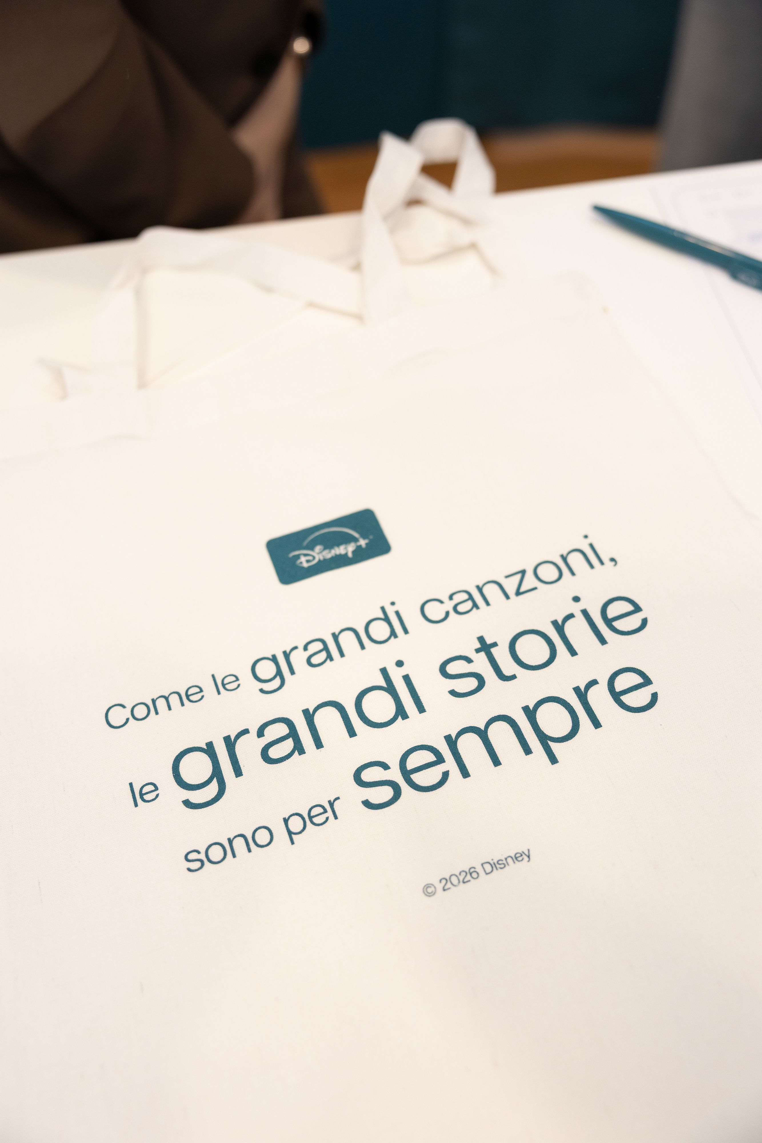 “Come le grandi canzoni, le grandi storie sono per sempre”: questo il messaggio riporto sulle tote bag personalizzate che Disney+ ha consegnato a tutti gli artisti in gara passati a EXTRA FESTIVAL a Villa Nobel durante la nostra settimana sanremese.
