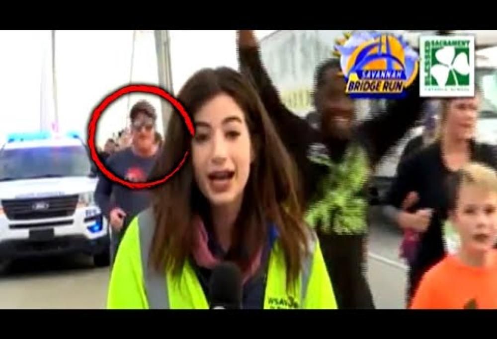 Nel video, che sta facendo il giro del mondo, si vede la giornalista in collegamento con la trasmissione che documenta la corsa annuale “Savannah Bridge Run“. Dietro di lei si vedono passare i corridori, molti dei quali (come consuetudine) salutano verso la telecamera.