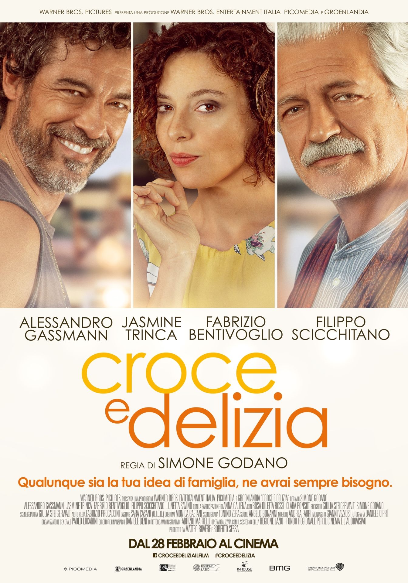 Dopo il successo di Moglie e Marito, Simone Godano torna dietro la macchina da presa per dirigere Alessandro Gassmann, Jasmine Trinca, Fabrizio Bentivoglio e Filippo Scicchitano, nel suo nuovo film Croce e Delizia. Una commedia brillante e corale che diverte e sa emozionare, basata sull’amore e sui legami familiari, perché qualunque sia la vostra idea di famiglia ne avrete sempre bisogno. Dal 28 Febbraio al cinema.