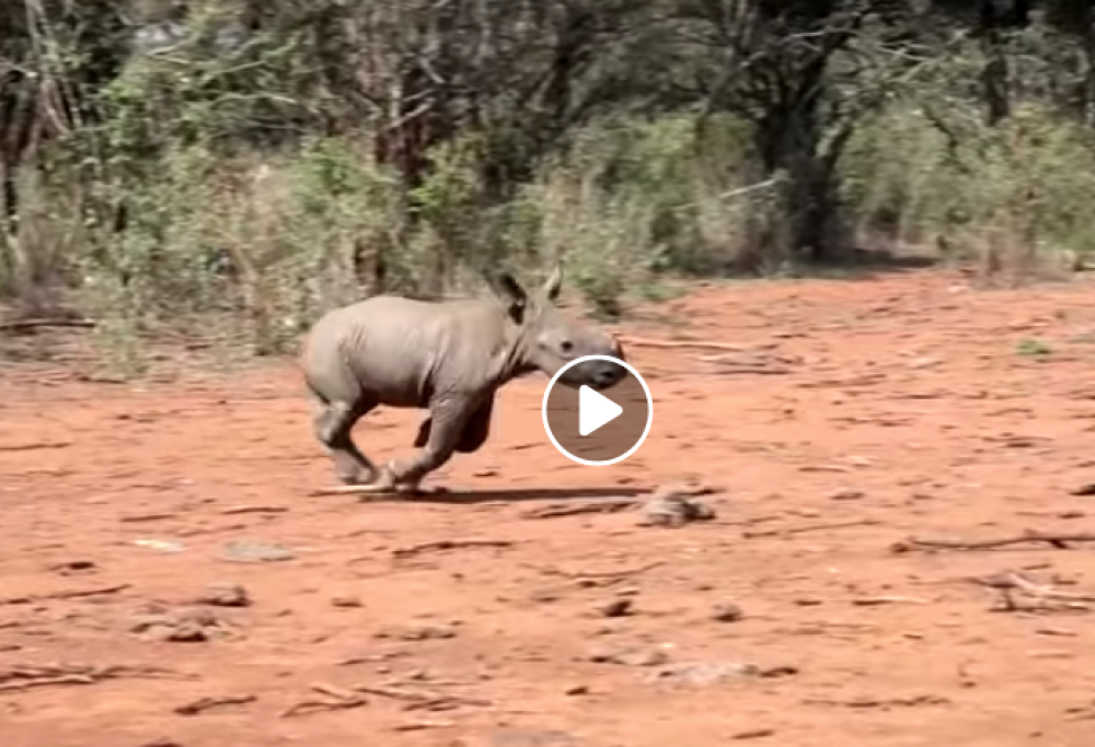 Cucciola di rinoceronte orfana impara a caricare: il video commovente