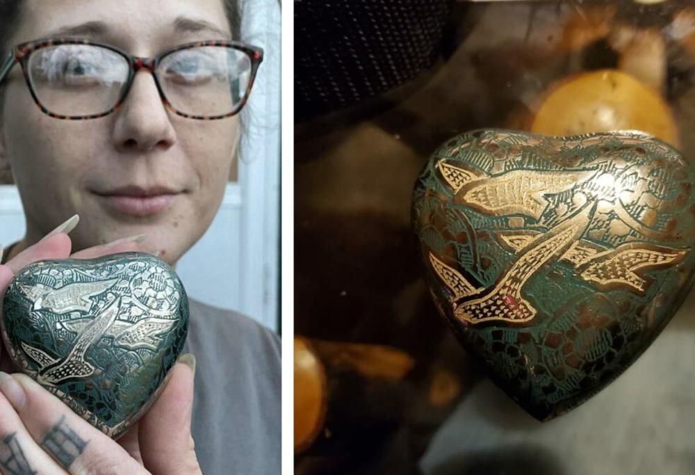 Circa 5 anni fa Jessica Roberts, una donna che vive a Wellington, si è recata con suo figlio ad un mercatino dell’usato. Tra i tanti oggetti in vendita, la sua attenzione è stata attratta da un grazioso fermacarte a forma di cuore in vendita per un dollaro, così ha deciso di acquistarlo.