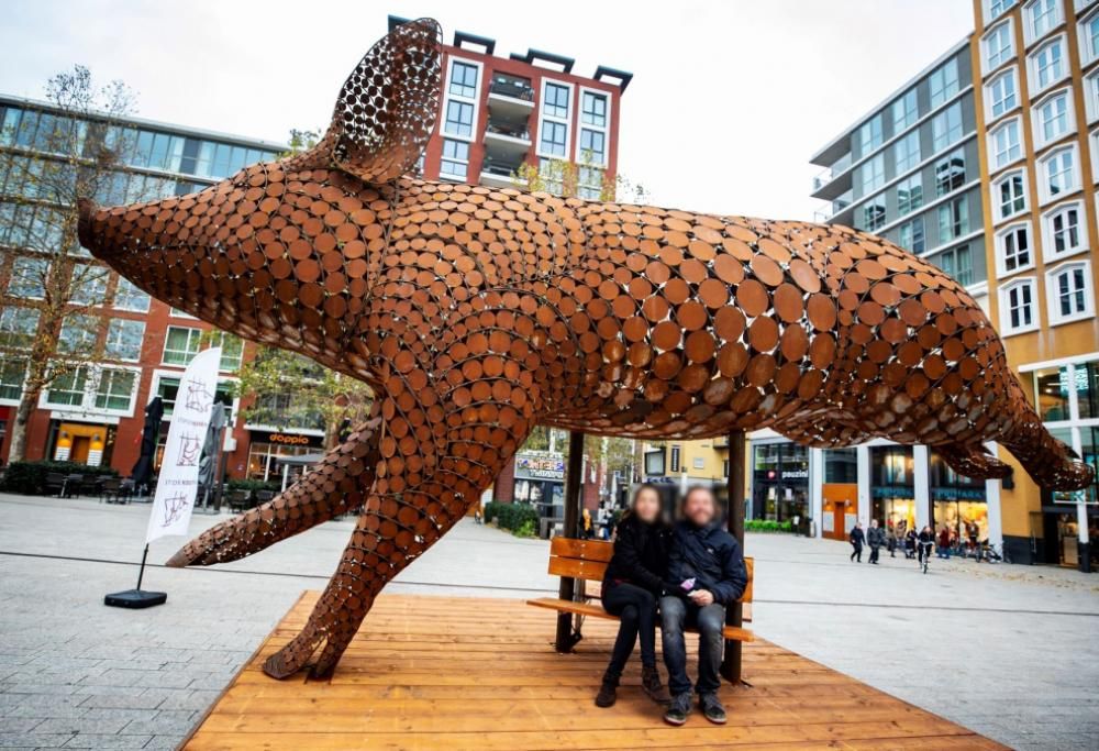 La scultura gigante rappresenta un maiale nell’atto di saltare (simbolicamente) nella libertà. L’artista, Jantien Mook, ha realizzato quest’opera per indurre l’osservatore a riflettere sulla forza e sulla bellezza degli animali e a non voltare lo sguardo altrove quando si parla di allevamenti intensivi.