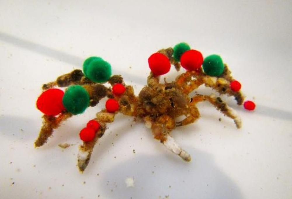 “Oh-oh-oh merry Christmas!” avrà canticchiato questo granchio Camposcia retusa mentre si decorava corpo e zampe con pompon rossi e verdi in pieno spirito natalizio? Probabilmente no, ma a noi piace pensarlo e probabilmente anche ai ricercatori dell’Università del Delaware che hanno condotto l’esperimento in oggetto.