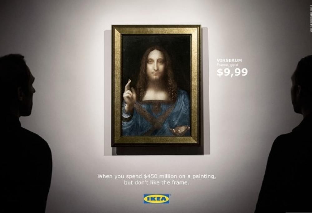 Ikea ironizza sulla vendita del Salvator Mundi per sponsorizzare le sue cornici. Geniale.