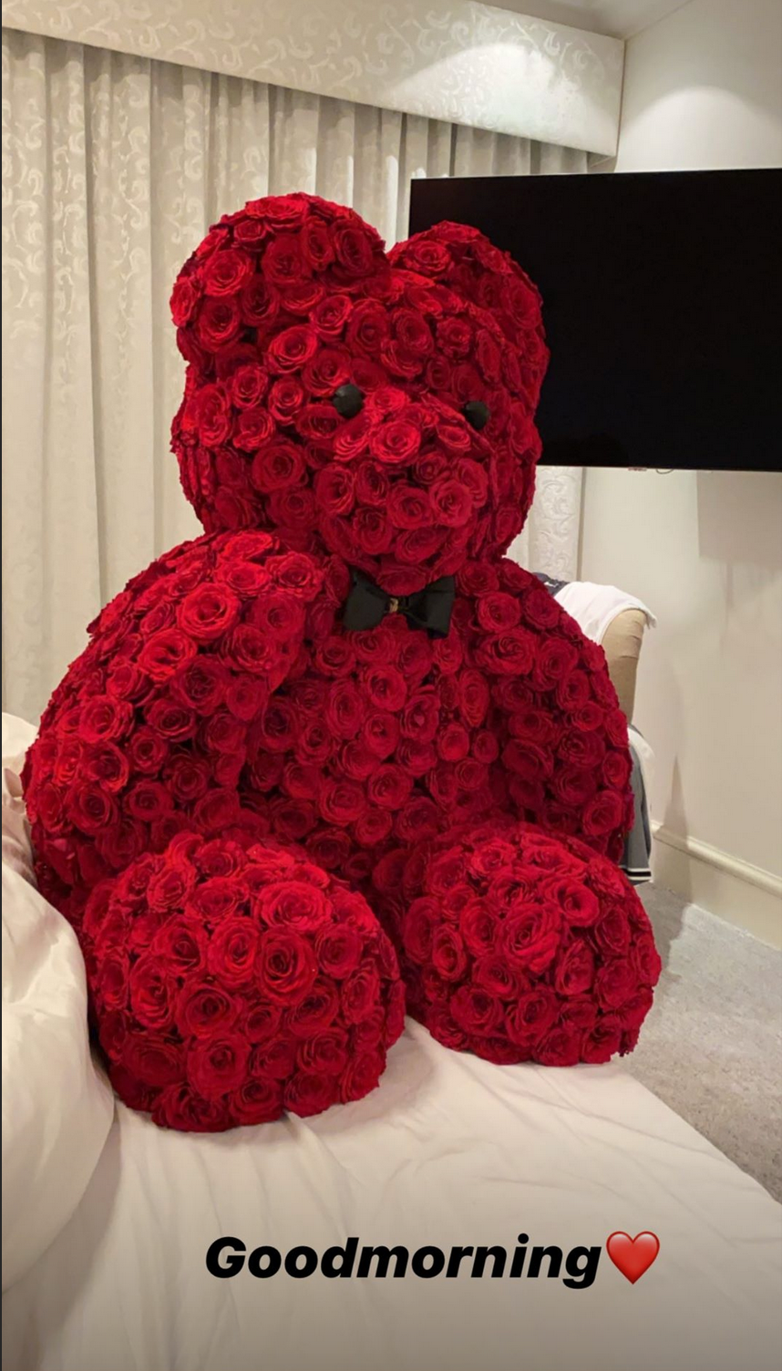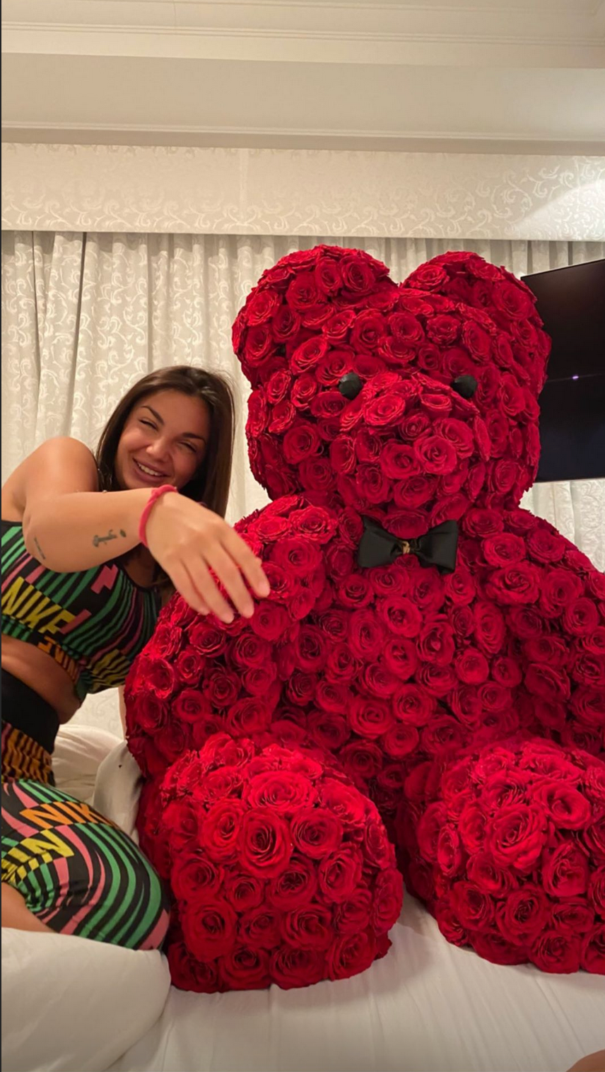 E proprio come per tutte le altre sue attività, Elettra ha mostrato la sorpresa che le ha preparato Afrojack: un enorme orso di rose rosse, un bellissimo mazzo di fiori rosa e una scritta romanticissima.