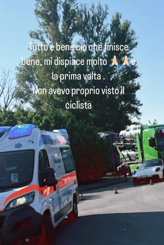 La stilista ha poi proseguito, tornando sull’accaduto con nuove riflessioni in una serie di storie girate dall’auto: “Ieri ho investito un ciclista, non mi era mai successo. Sta bene. Io amo le macchine sportive, le compro, mi piace guidarle. Ora mi sta arrivando una macchina bellissima, una Dallara, ma dove le posso guidare? In autostrada no, perché mi fanno la multa. Se vado dal mio coach, c’è il ciclista che ti arriva lì davanti. Ma gliel’ho detto: sarei voluta essere al tuo posto”. Successivamente, ha aggiornato i suoi follower sulle condizioni del ferito: “Ho sentito il ciclista, è stato dimesso, escoriazioni, niente di rotto. Inizio a respirare”.