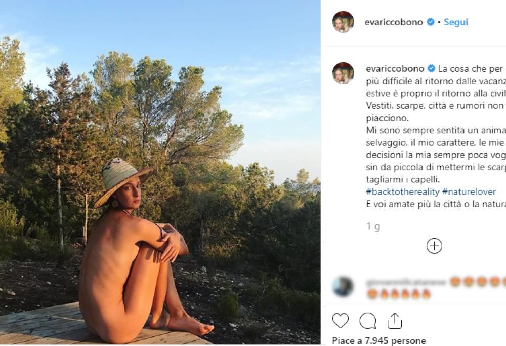 Eva, infatti, scrive: «La cosa che per me è più difficile al ritorno dalle vacanze estive è proprio il ritorno alla civiltà. Vestiti, scarpe, città e rumori non mi piacciono. Mi sono sempre sentita un animale selvaggio, il mio carattere, le mie decisioni la mia sempre poca voglia sin da piccola di mettermi le scarpe o tagliarmi i capelli. E voi amate più la città o la natura?»