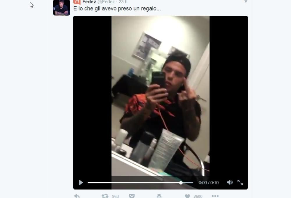 Una frase davvero infelice a cui Fedez ha voluto immediatamente replicare con un piccolo video pubblicato su Twitter: “Un consigliere regionale leghista mi ha augurato la morte e io che gli avevo comprato un regalo”. Il tutto condito da un dito medio.