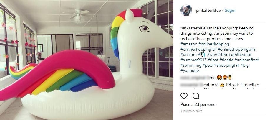 Vedersi recapitare un unicorno delle dimensioni di una piscina o un cuscino con tanto di bambino che ci dorme sopra non può che essere un pretesto per condividere l’episodio su tutti i social.