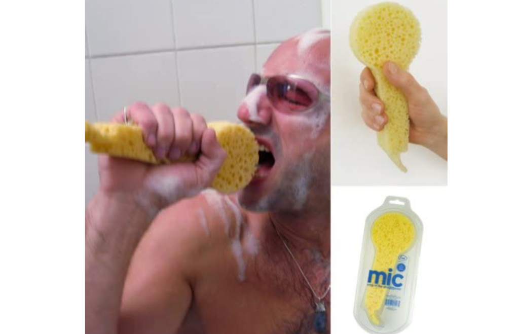 - La spugna a forma di microfono. Questa è un’invenzione totalmente inutile, ma che relax poter cantare stringendo una spugna canterina.