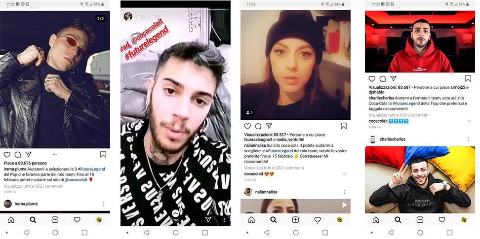 Da alcune ore sono apparsi sui profili Instagram di Irama, Emis Killa, Annalisa, Charlie Charles degli inviti ad ascoltare sul sito futurelegend.coca-cola.it gli artisti selezionati dopo la prima fase di reclutamento di Future Legend.