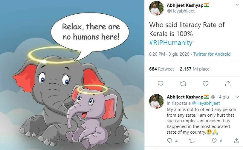 L’episodio, raccontato con un post su Facebook da Mohan Krishnan, una guardia forestale che ha partecipato alle operazioni di recupero dell’elefantessa (ritrovata morta nelle acque del fiume Velliyar), ha commosso il mondo.
