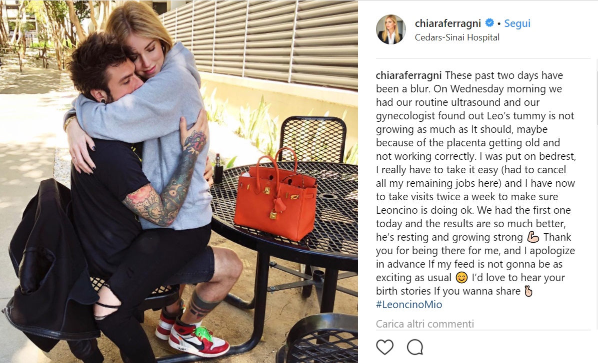 «Questi ultimi giorni sono stati un po’ caotici. Mercoledì mattina abbiamo avuto l’ecografia di routine e il nostro ginecologo ha trovato che Leo non stesse crescendo tanto quanto dovrebbe, forse perché la placenta non sta funzionando al meglio. Sono stata messa a riposo e devo prendere tutto con calma (ho dovuto cancellare gli impegni di lavoro). Devo fare delle visite due volte a settimana per controllare che Leoncino stia bene. Abbiamo già avuto i primi risultati e sono buoni. Adesso si riposa e sta crescendo forte».