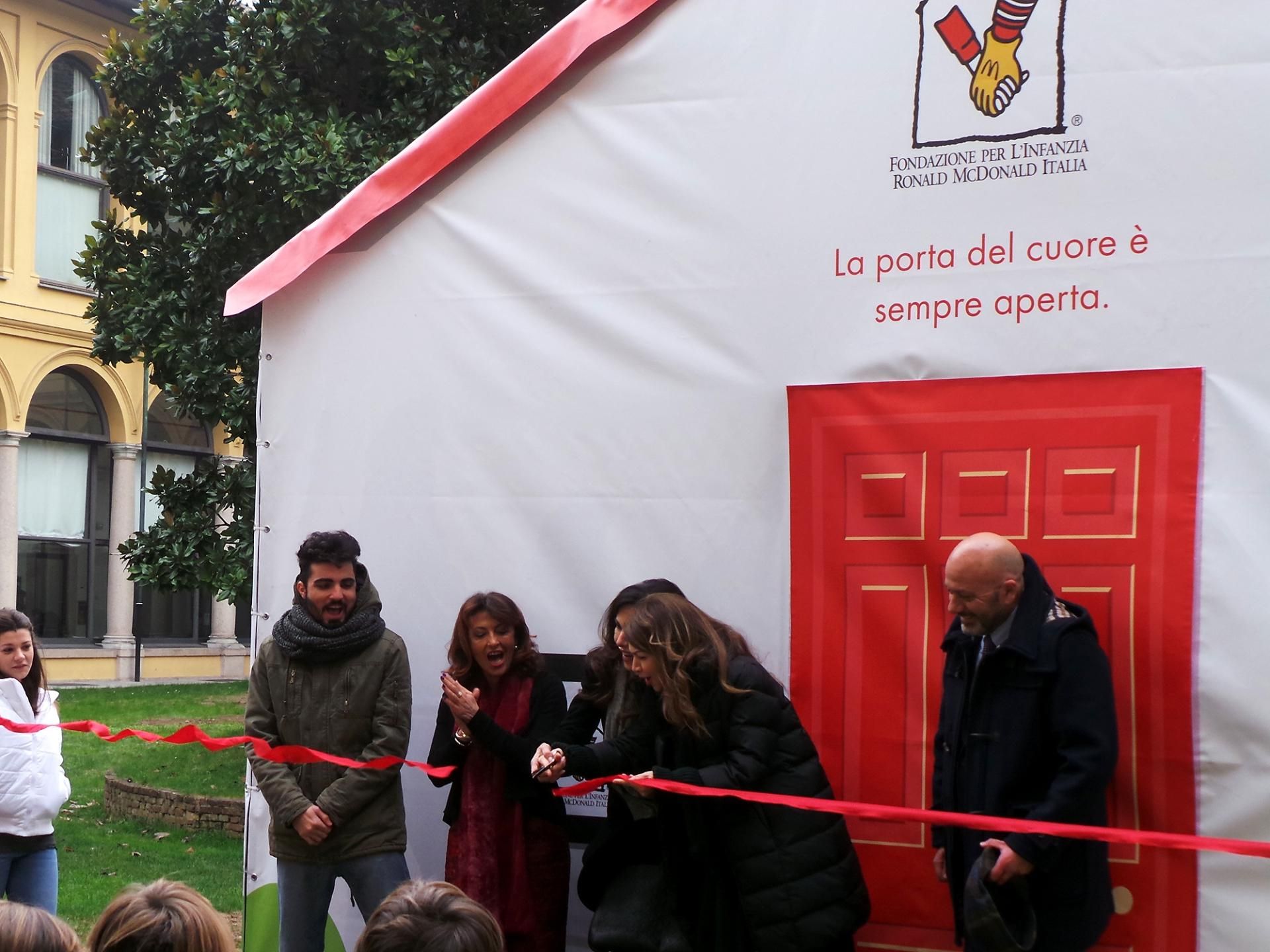 Al taglio del nastro di questa mattina Pierluigi Monteverdi, Presidente di Fondazione per l’Infanzia Ronald, Cristina D’Avena, Emanuela Folliero e il nostro Bryan.