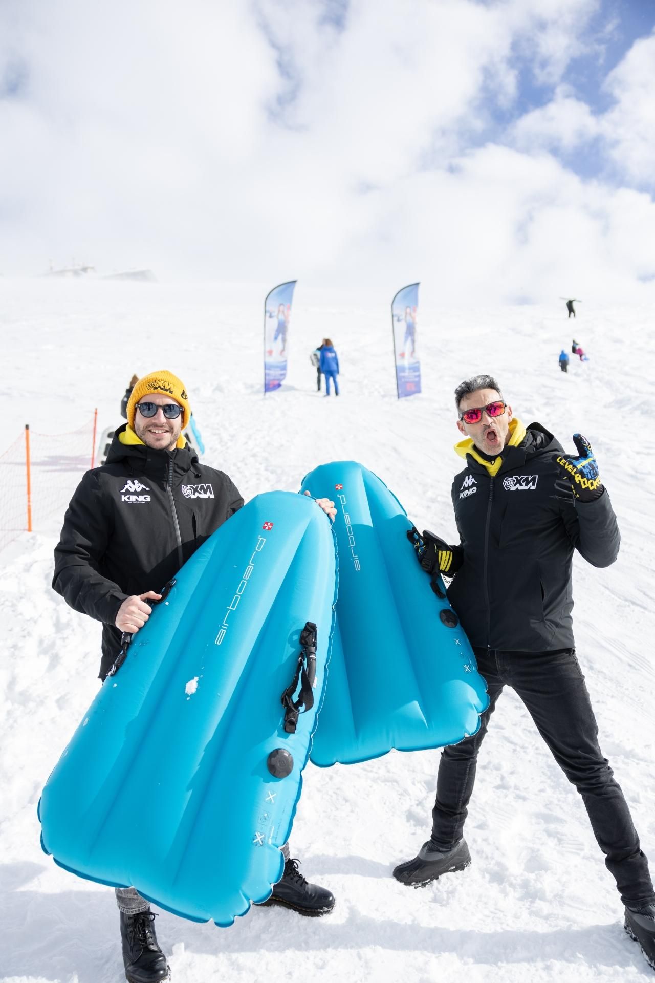 La più amata è stata l’“Airboarding”. Un’attività che si svolge su un bodyboard gonfiabile high tech sul quale ci si sdraia per attraversare in tutta velocità un’apposita pista. Un’esperienza che regala adrenalina pura provata anche da Dario Micolani e raccontata sul profilo Instagram di Radio 105 e TIM.