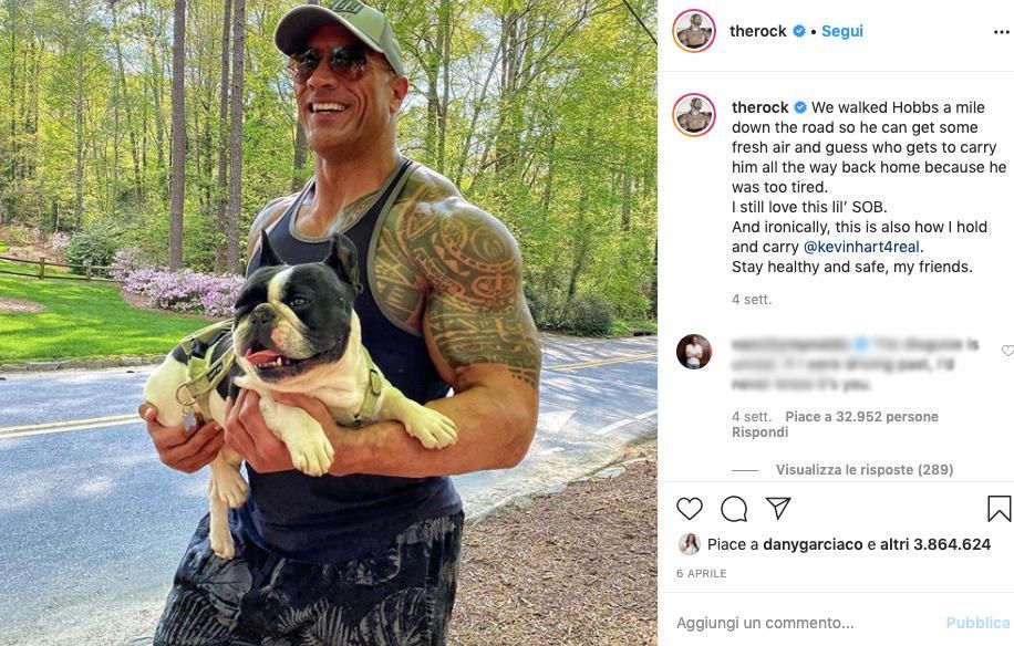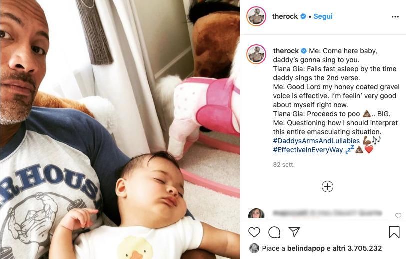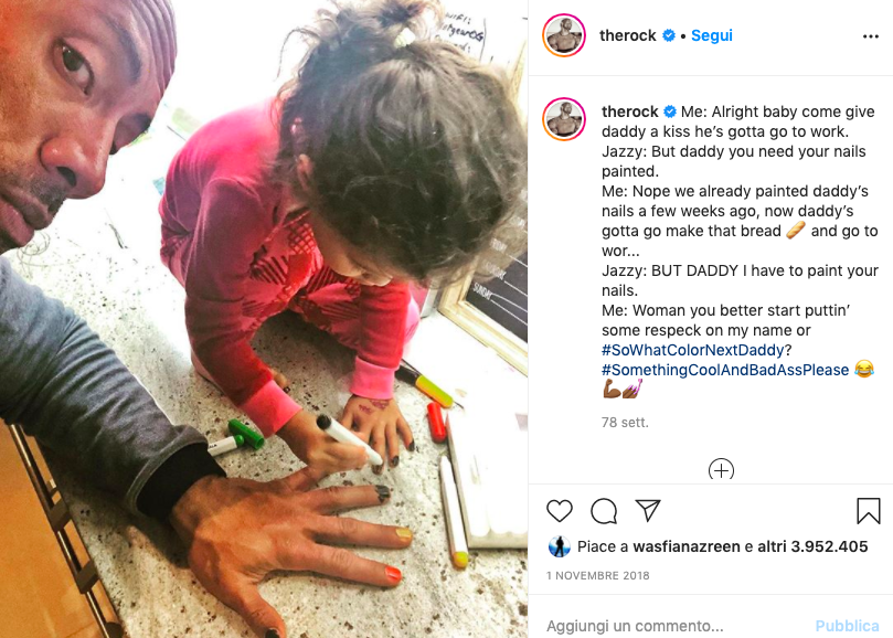 Siamo abituati a vederlo in film pieni di testosterone e adrenalina, ma Dwayne “The Rock” Johnson ha anche un cuore grandissimo. Tenero e generoso. Non perde occasione, infatti, di condividere con i follower scene di vita quotidiana, quando sveste i panni di attore e indossa quelli di marito affettuoso, padre premuroso, amante degli animali.