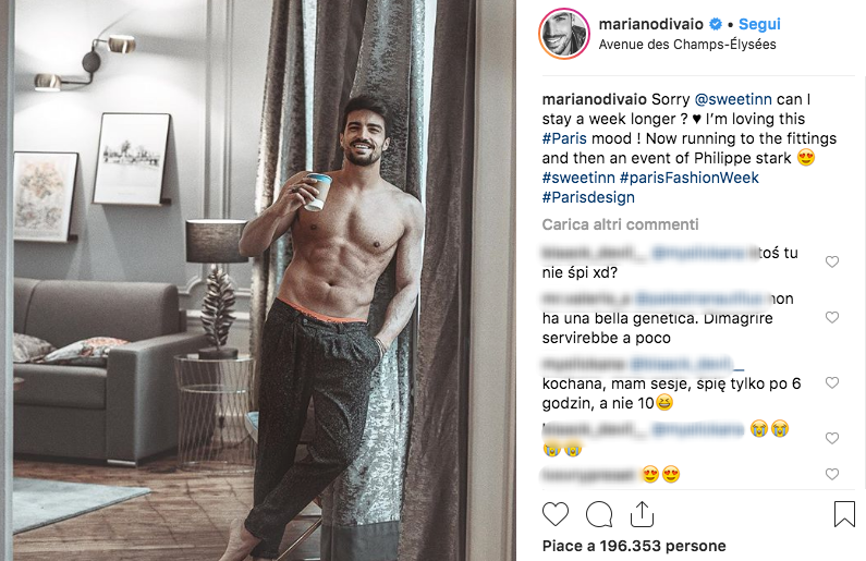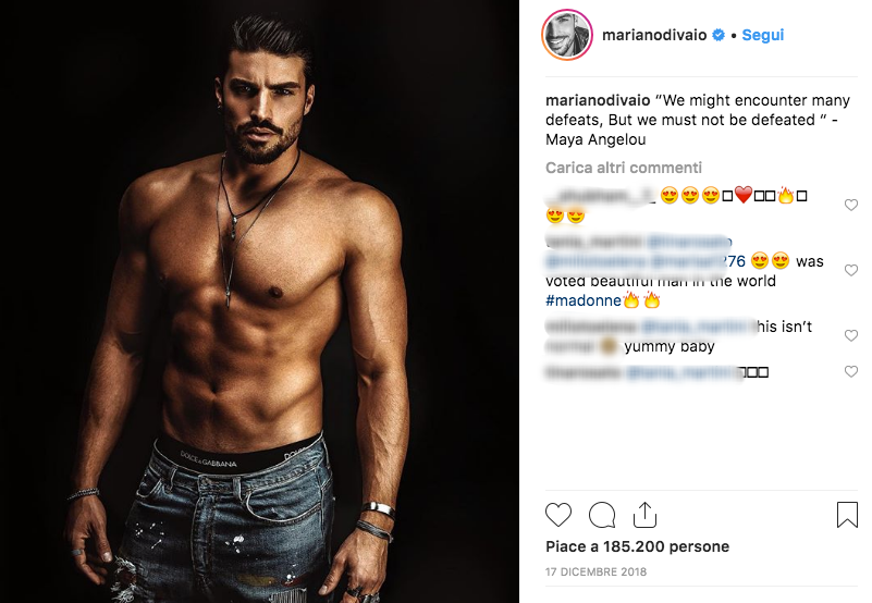 E’ molto conosciuto come blogger e influencer… oltre che per la sua carriera nel mondo della moda. Mariano Di Vaio è entrato nella classifica di Tc Candler dei 100 uomini più belli del mondo, battendo senza troppa fatica sex symbol del calibro di Di Caprio, Zac Efron, Michael Fassbender e David Beckham. Mariano si posiziona in ottava posizione, il primo posto invece è di Jason Momoa, l’attore di Aquaman.