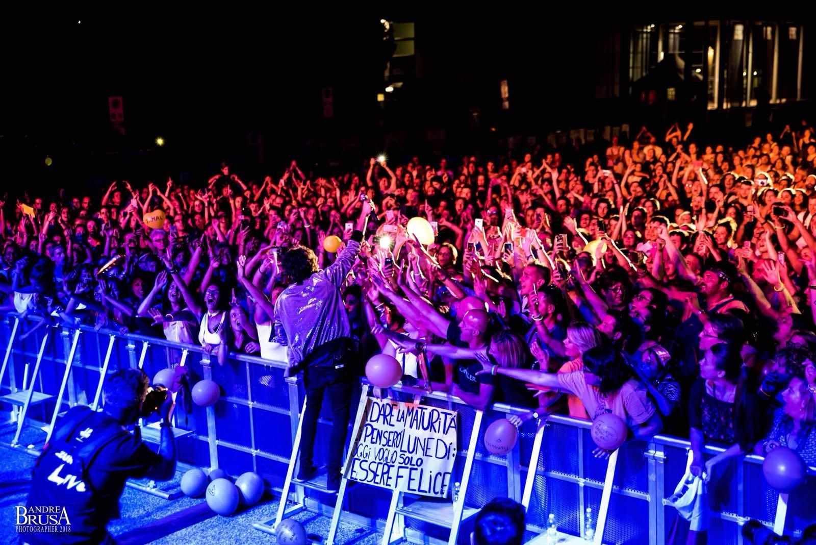 Qualcuno è qui per me, vi vedo bene, siete di fronte. Non fuggirò, non intendo mica scappare. Se canto piano, vi sento forte“. Potete ascoltare il verso del brano qui sotto, sopra trovate invece le foto dello show!