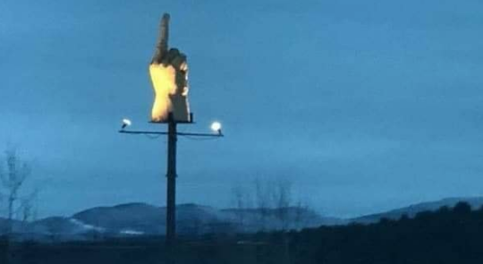 Ted Pelkey vive a Westford nel Vermont e da 10 anni lotta contro l’amministrazione della sua città che non gli concede le autorizzazioni necessarie per la costruzione di un garage utile per il suo lavoro. L’uomo è stato costretto, a causa di questo rifiuto, a spostare la sua attività nel comune di Swanton, poco distante da Westford. E così, ormai esausto, per protesta, fa costruire una statua gigante che raffigura un dito medio alzato… un gesto che è il simbolo di sdegno e poca ammirazione nei confronti di chi è indirizzato. Un’opera che ha dell’incredibile e che non può essere rimossa perché considerata per legge “arte pubblica“.