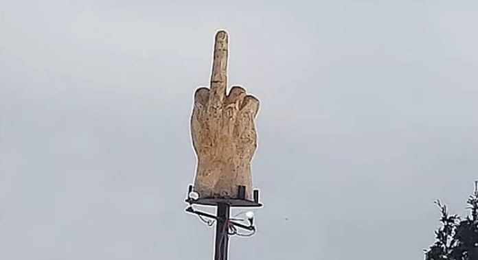 Fa costruire una statua con dito medio alzato per protestare contro la sua città