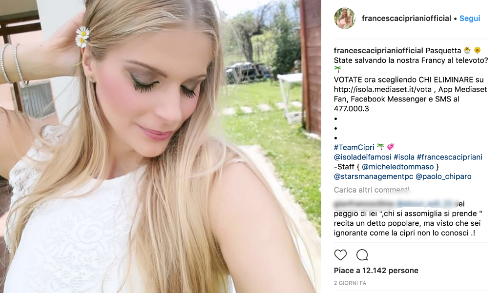 Francesca Cipriani è una dei protagonisti indiscussi di questa edizione del reality “L’Isola dei Famosi”. Ma forse non tutti ricordano che, a Pasqua del 2014, la procace showgirl si è trovata a vivere un momento difficile che l’ha portata a denunciare il suo ex fidanzato, il tronista Marco Pavanello.