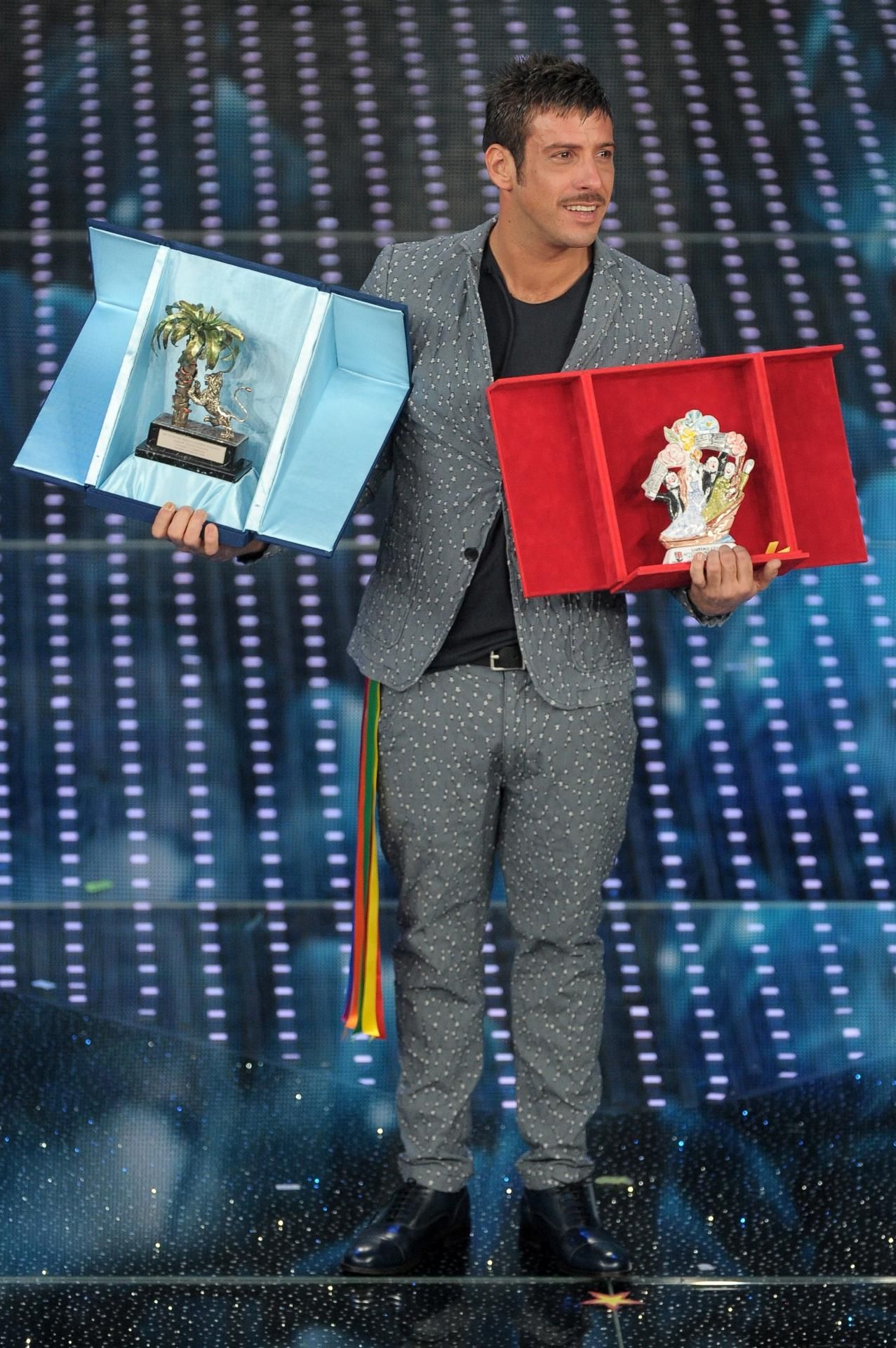 La premiazione. Momento politico anche nella serata di venerdì. A premiare Gabbani è stato infatti il presidente della Regione Liguria Giovanni Toti che ha indossato un fiocco tricolore “simbolo dell’Italia e degli italiani per due ragazzi che non possono essere qui” con riferimento al caso dei Marò.