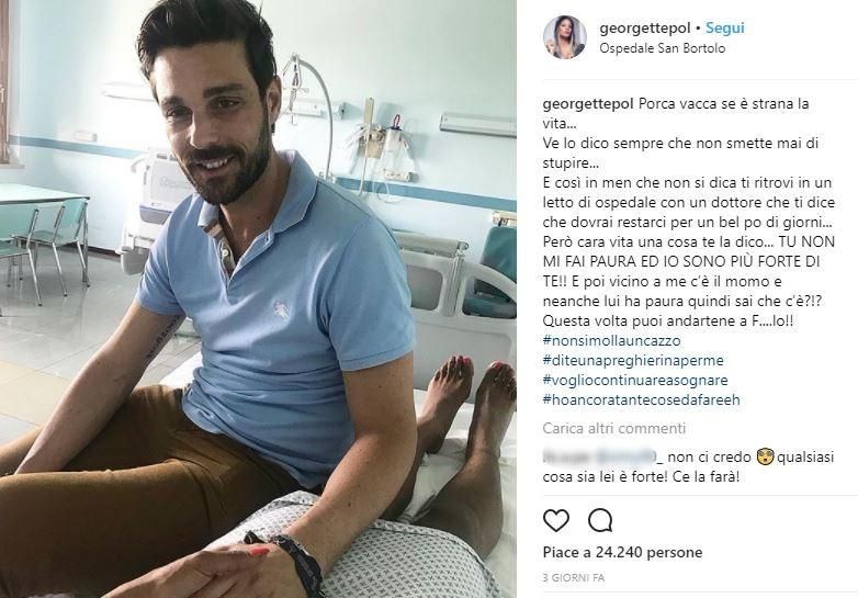 La ragazza, che è stata tra i protagonisti di Temptation Island 2016, sta vivendo un momento non semplice ma non ha rivelato il problema che ha comportato il suo ricovero in ospedale. Georgette è su una sedia a rotelle ma combatte con tutta la forza possibile (e con la positività che da sempre la contraddistingue) affinché possa tornare presto a camminare. Ecco il racconto fatto dalla stessa Polizzi attraverso alcuni post sui social. C’è anche un riferimento compagno Davide Tresse, che le è rimasto accanto anche dopo la movimentata esperienza televisiva.