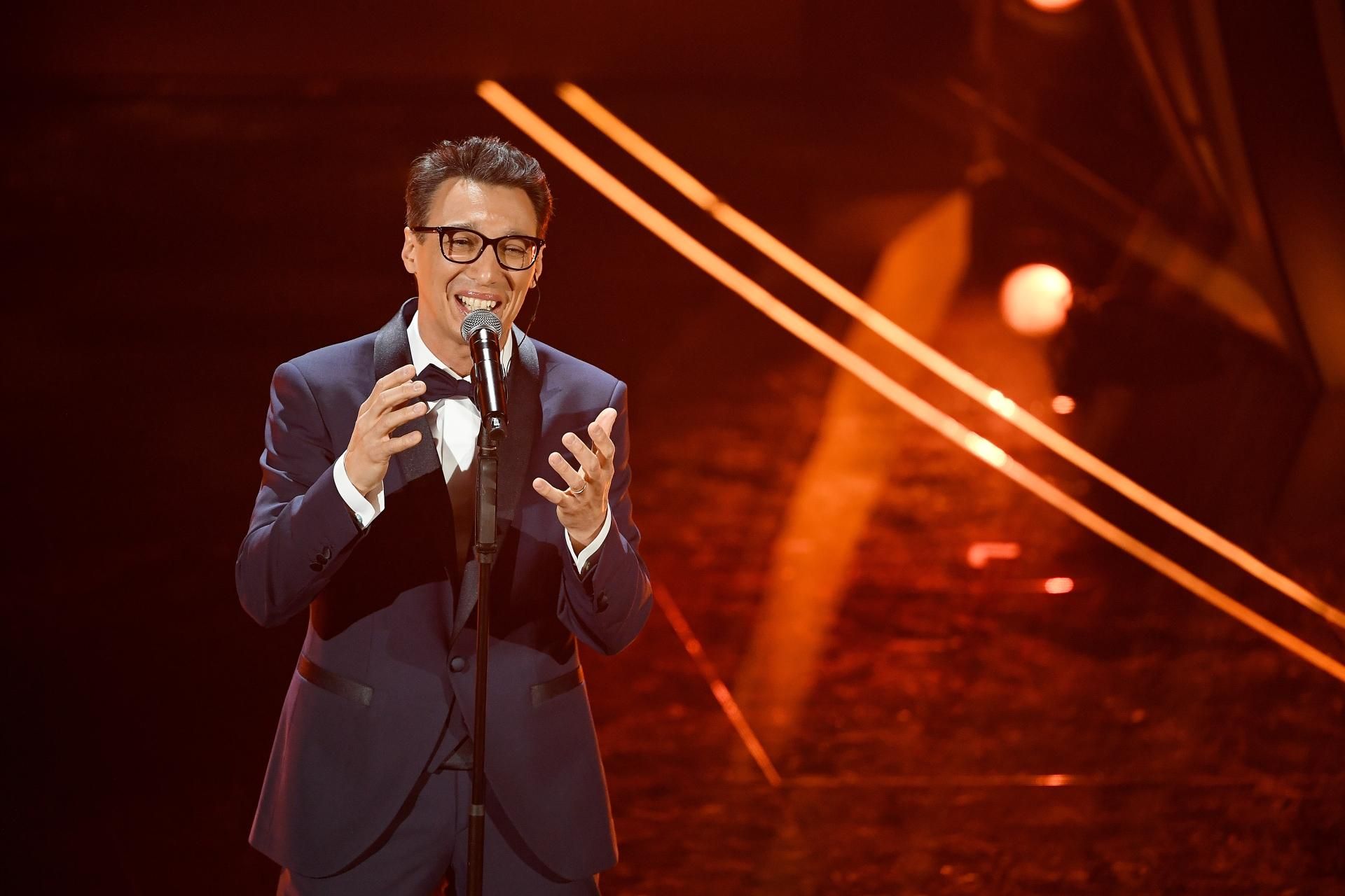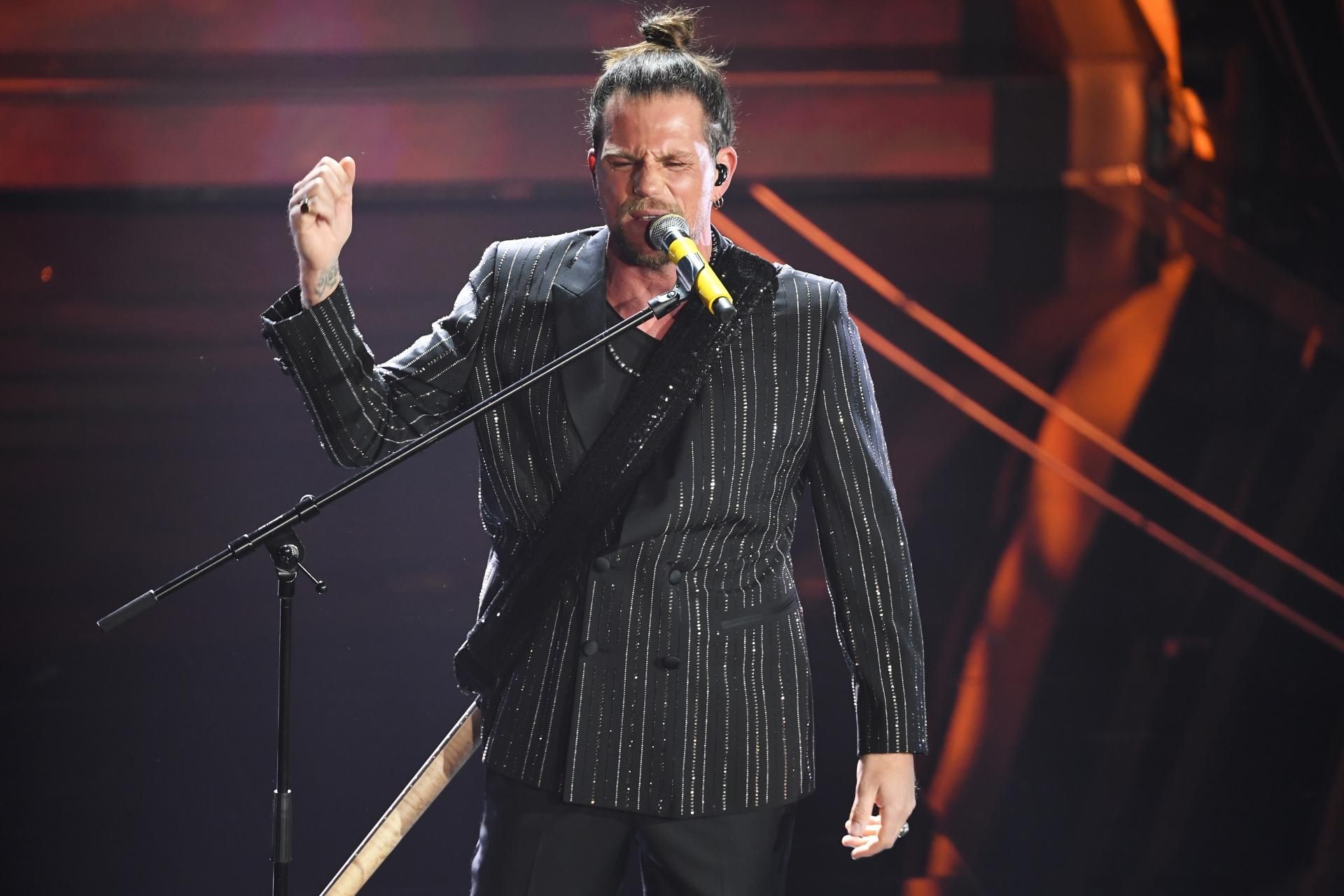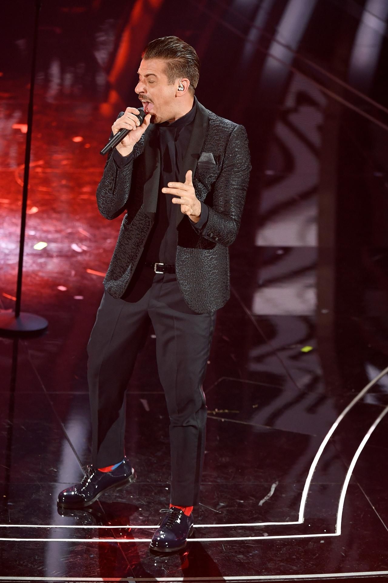 Tiziano Ferro, per questo 70esimo Festival di Sanremo, ha deciso di intraprendere la via del completo scuro, anche stasera, il cantante gioca semplice ma elegante.