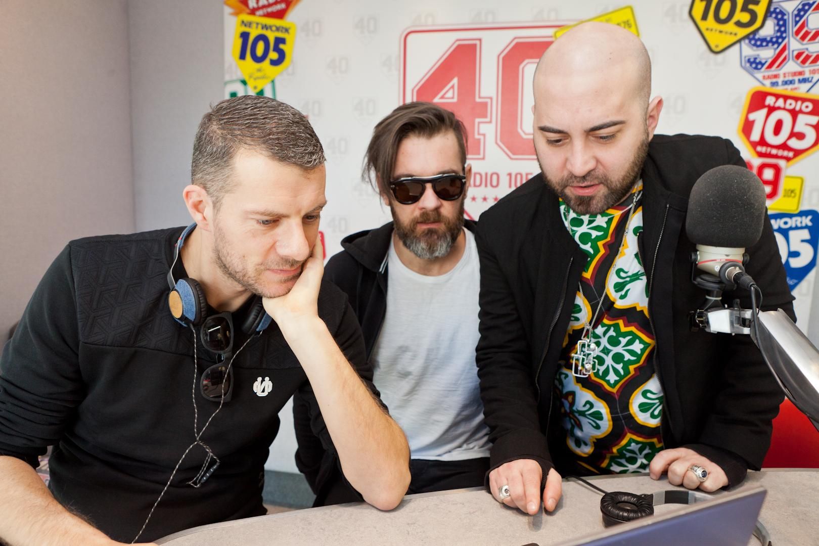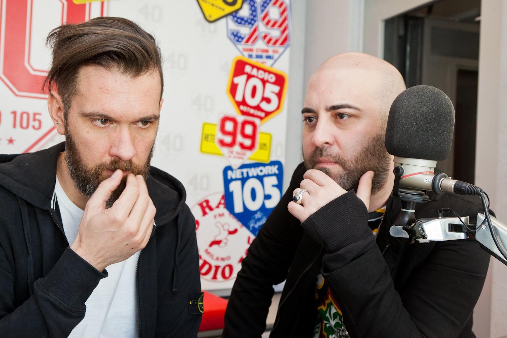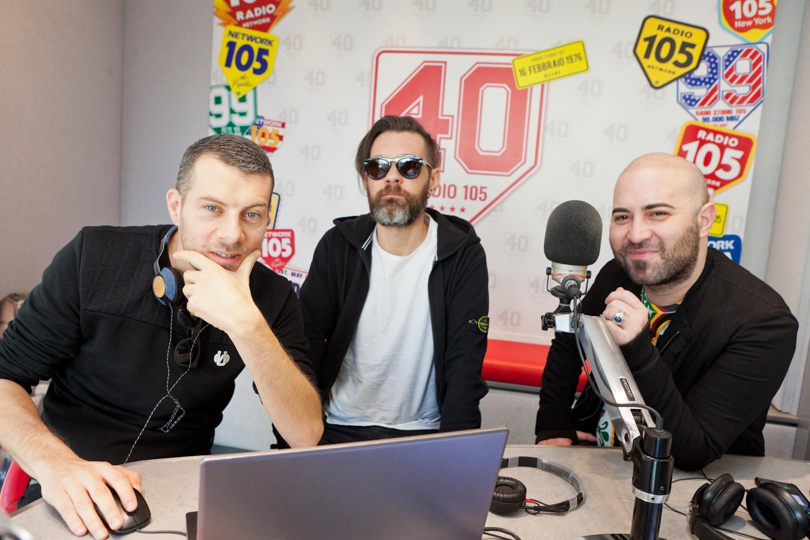 La rockband salentina tornerà presto in tour con due nuove tranche on the road, una primaverile, nel mese di maggio, e una estiva, a luglio. Ecco le foto scattate negli studi di Radio 105.