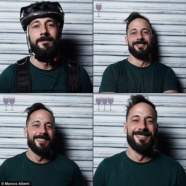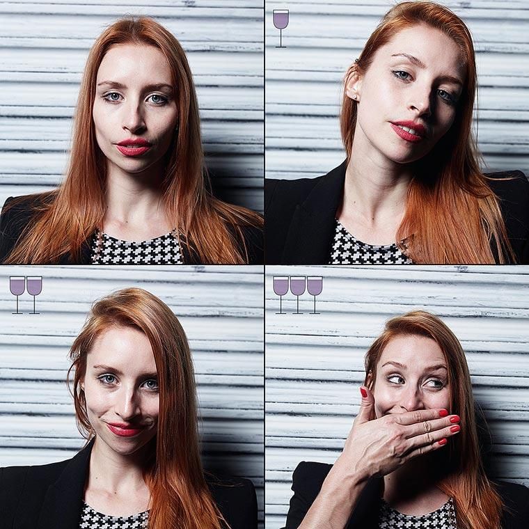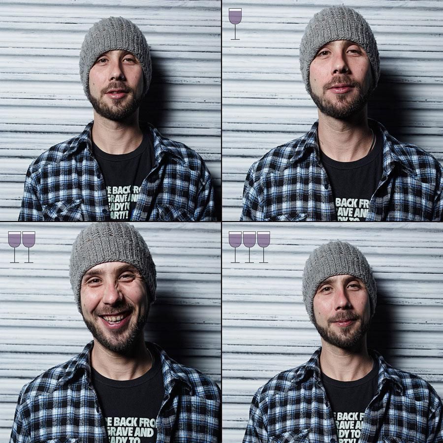 A questa mancanza ha voluto sopperire il fotografo brasiliano Marcos Alberti, che ha invitato nel suo studio alcuni amici, fotografandoli a ogni bicchiere di vino (fino a 3, non esageriamo!)
