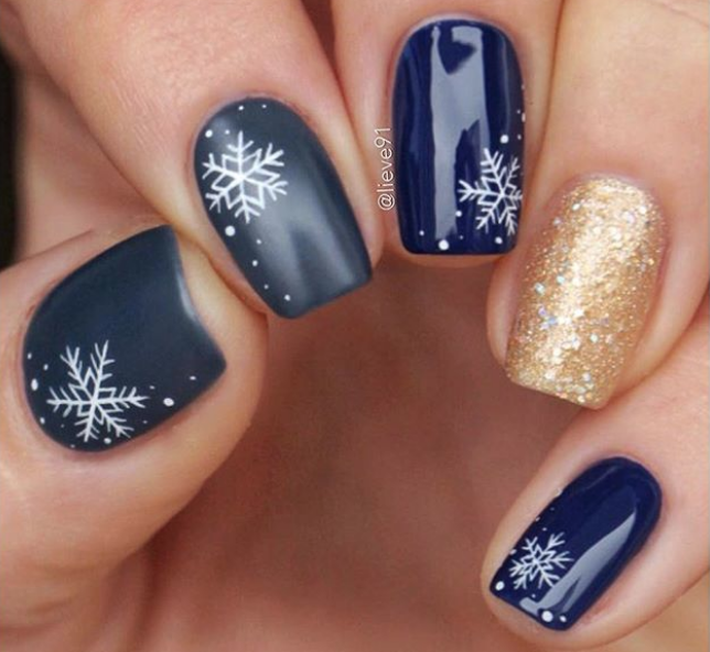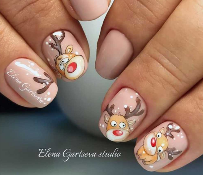 Alle renne e agli abeti decorati si affiancano pinguini ma anche unghie in tinta unita con un semplice dettaglio che conferisce un mood più natalizio.