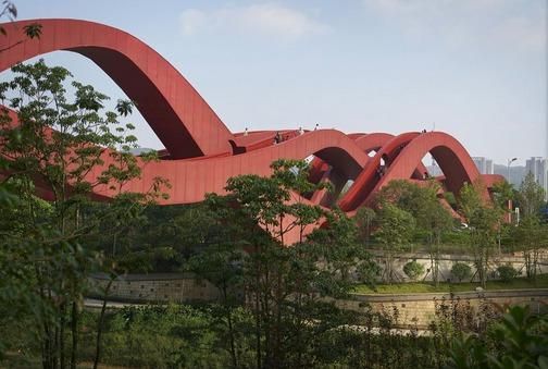 Gli accessi pedonali dei tre ponti sono otto. Di più. Si contano cinque “moon gates”, come le ha chiamate Michel Schreimachers, uno degli architetti che ha realizzato la struttura, e le sue forme ricordano vagamente le montagne russe. La scelta del colore rosso è da attribuire al famoso nodo cinese simbolo di fortuna e prosperità.