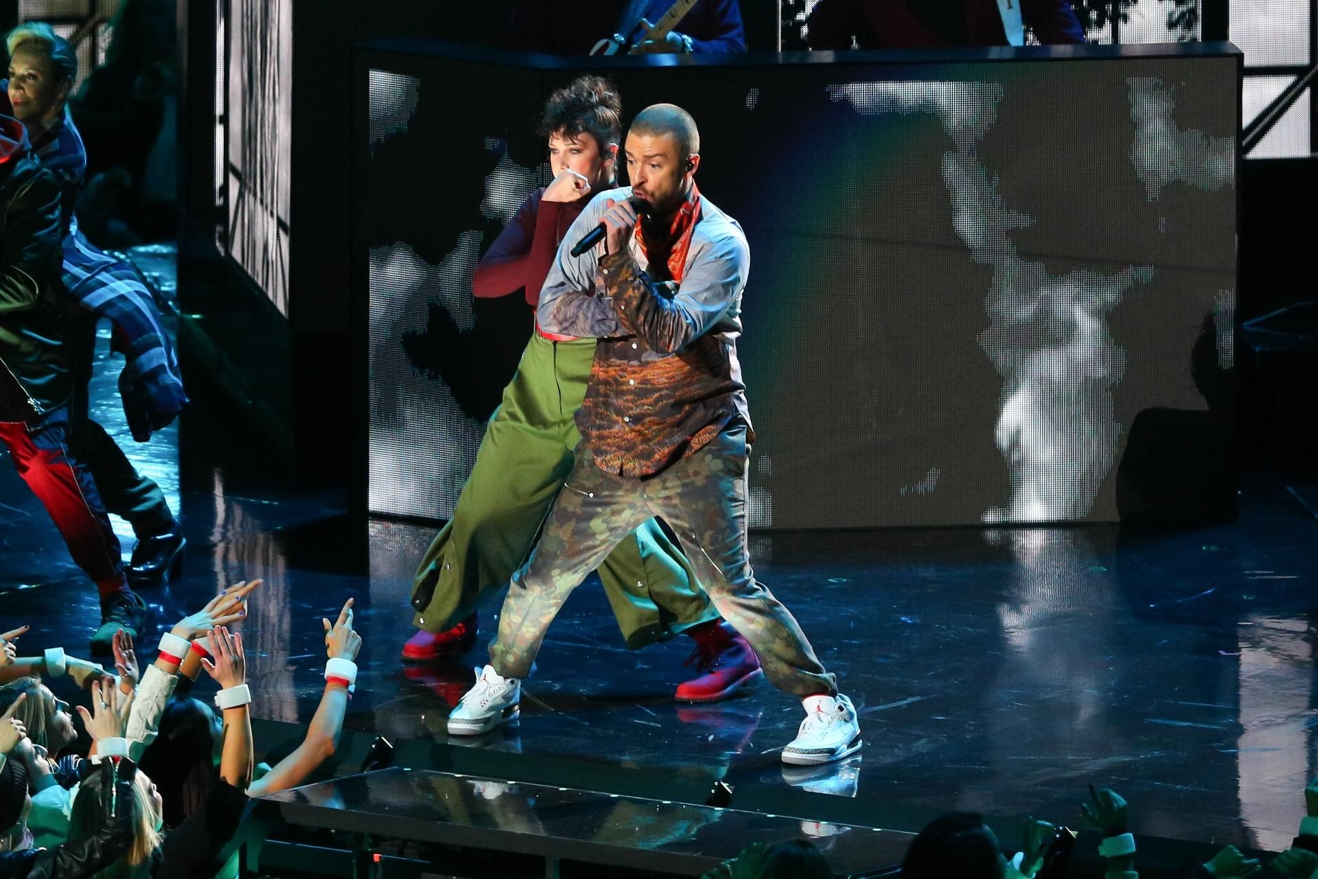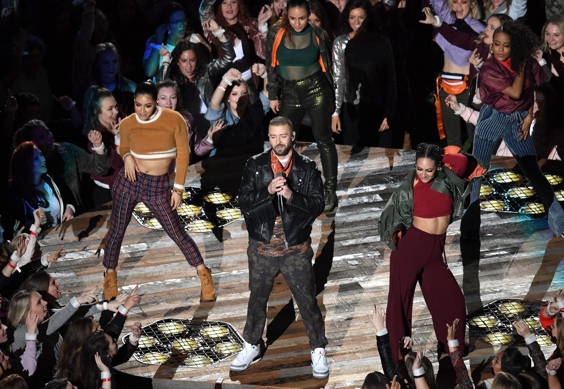 Lo spettacolo musicale del Super Bowl è iniziato sulle note del suo ultimo singolo, “Filthy“, tratto dal disco “Man of the Woods“, uscito venerdì scorso. Per il resto dell’esibizione (tredici minuti) Timberlake ha pescato ampiamente nel repertorio dei suoi classici: “My Love“, “Cry Me a River“, “SexyBack“.