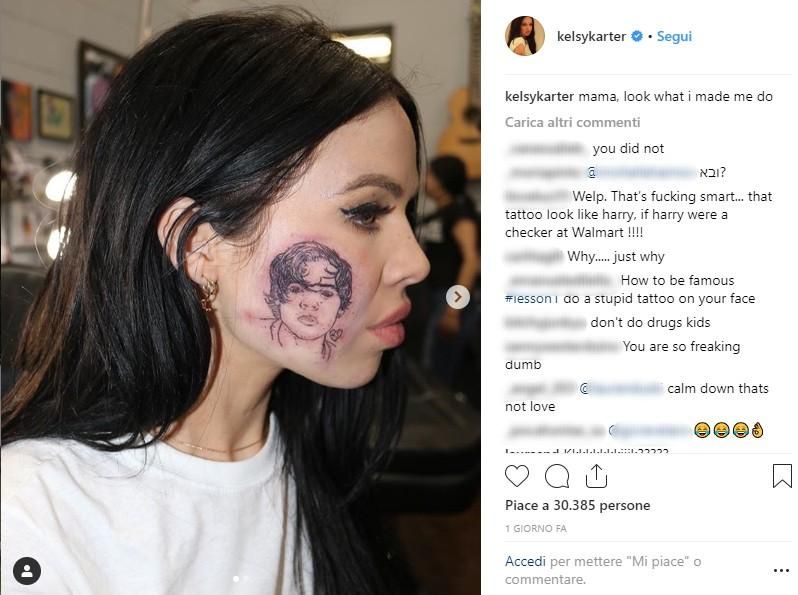 La cantante Kelsy Karte si tatua Harry Styles sul volto