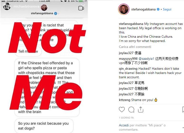 A poco sono valse le scuse dello stilista e l’aver accusato un hacker di aver violato il suo account Instagram. Lo scivolone potrebbe comportare serissime conseguenza sul mercato cinese del brand.