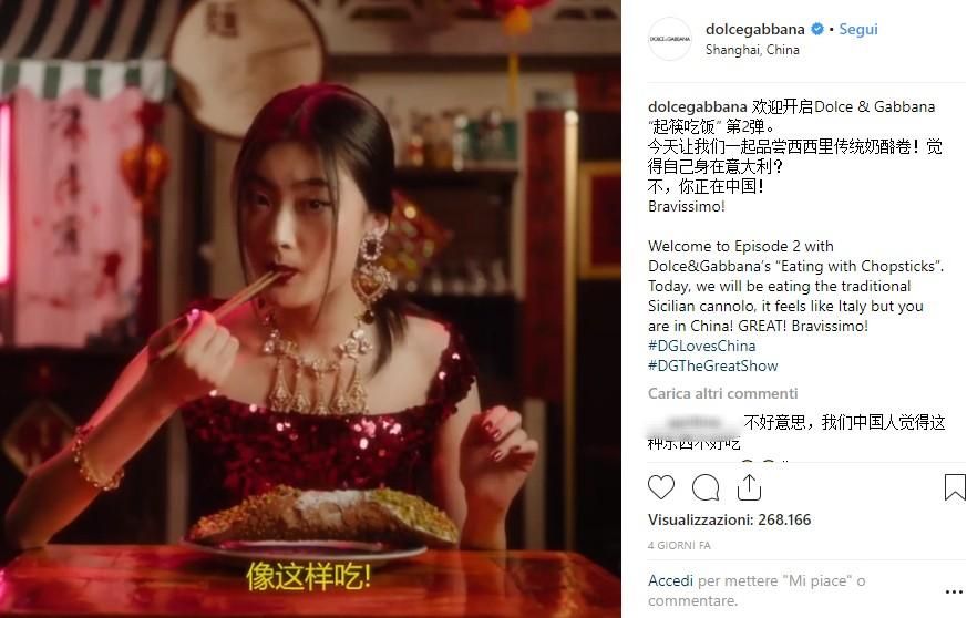 Tutto è cominciato con la pubblicazione di una campagna pubblicitaria video che D&G ha lanciato per promuovere la sfilata programmata per il 21 novembre a Shanghai. Nei video si vede una donna cinese che tenta di mangiare con le bacchette dei piatti tipici della cucina italiana: pizza, spaghetti e cannolo siciliano.